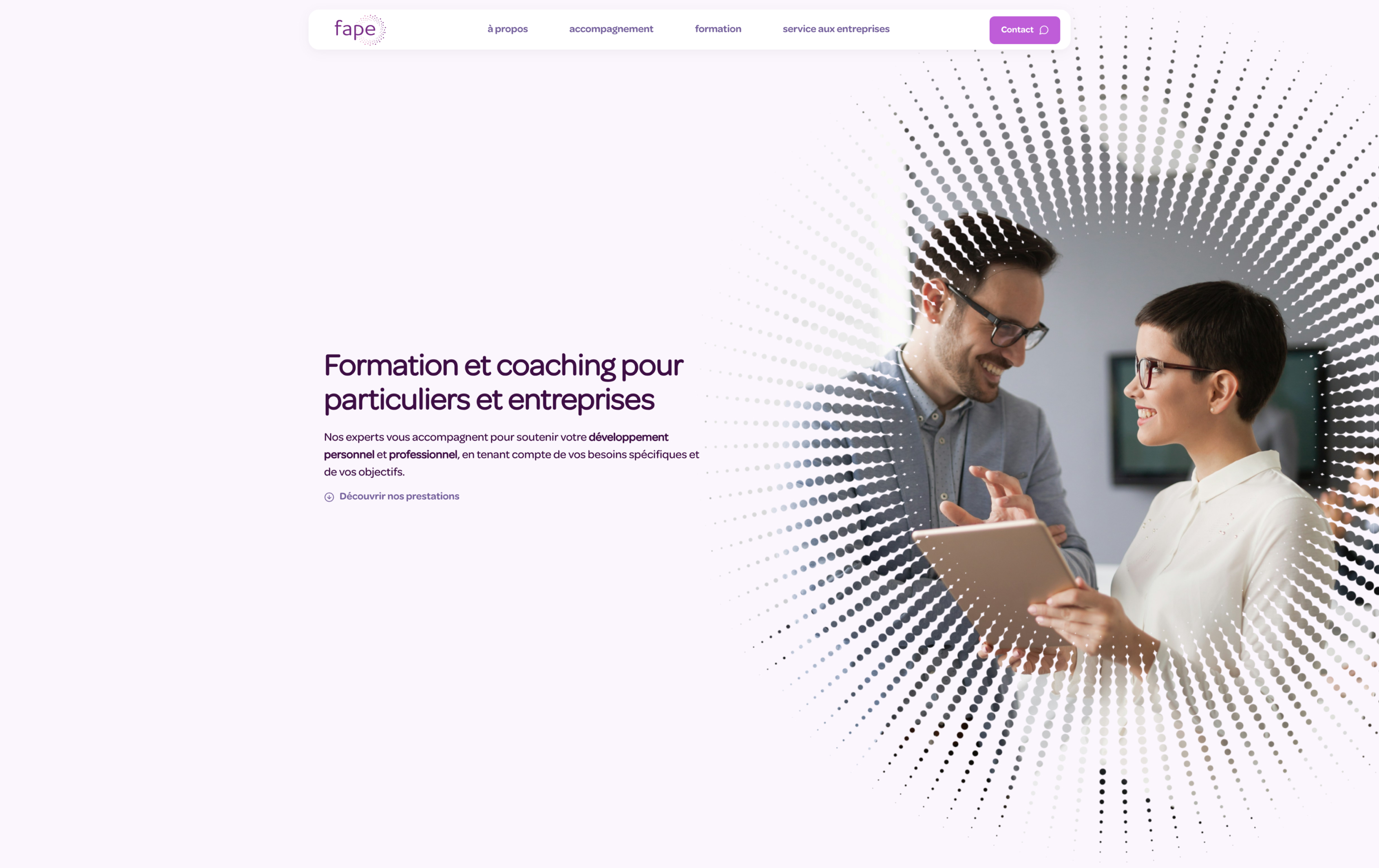 Création d'un site web pour La fape qui propose des formation et coaching pour entreprises et particuliers.